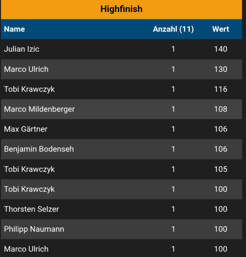 Zu erwähnen sei noch, das Andreas „Broiler“ Lenz 6 perfekte Darts im Halbfinale hatte und auf 9-Darter Kurs war. Dafür hat es leider nicht ganz gereicht, aber mit 11 Darts ein Leg zu beenden ist ebenfalls aller Ehren wert !