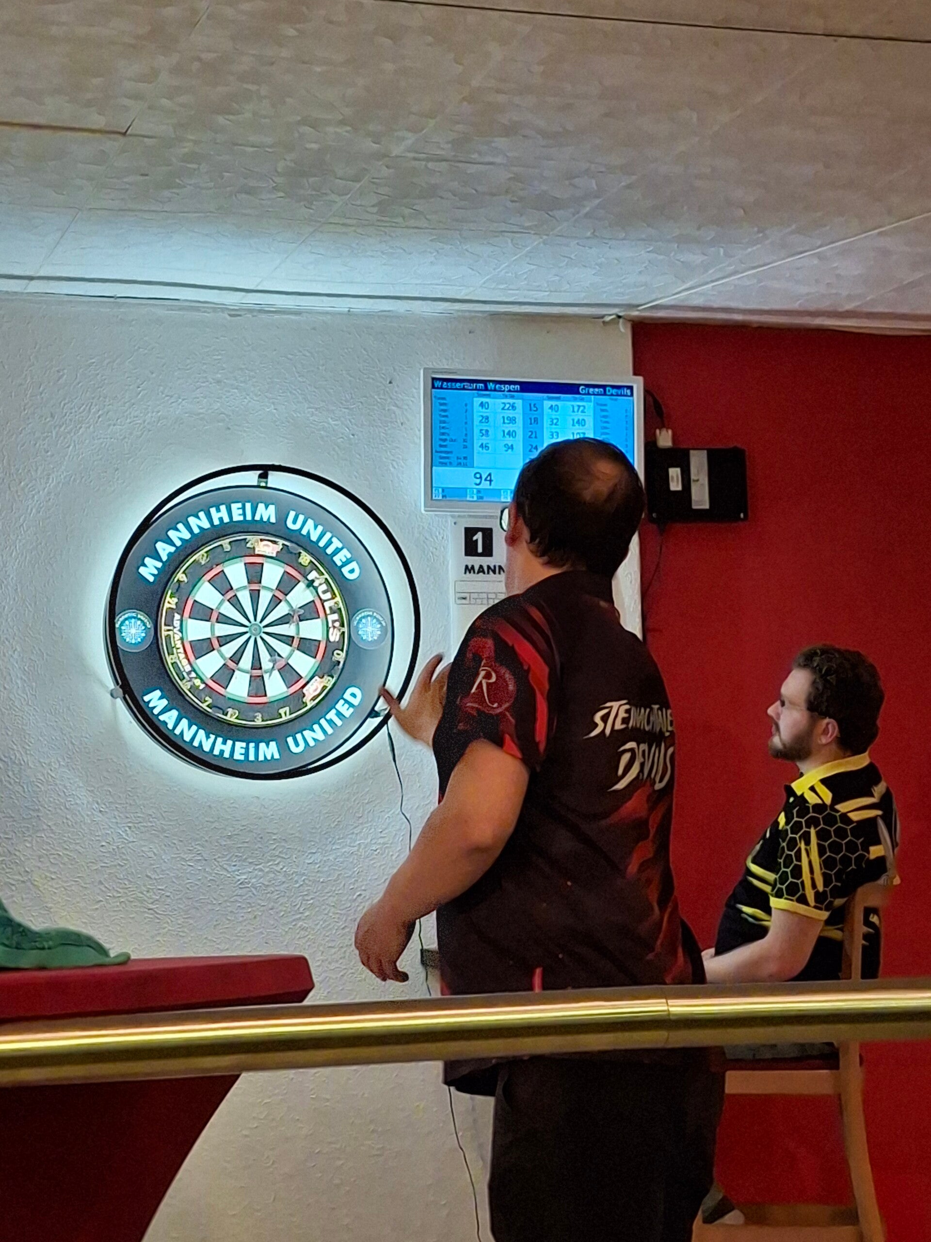 (SG) Mit großen Erwartungen ging es gestern für unser Aufbauteam nach Wiesloch, wo wir freundlich empfangen wurden. In spannenden Duellen ging uns leider gegen Ende die Puste aus und wir mussten uns mit einer knappen Niederlage zufrieden geben. Erfreulich war dagegen das Debüt von Dennis Montag, der gleich mal bewies, wo die Darts so hinfliegen sollten.