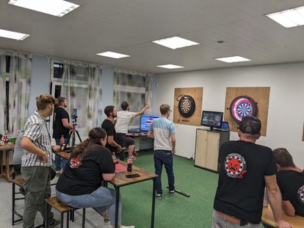 Die neu angeschafften Teppiche wurden noch fachgerecht zugeschnitten uns ausgerichtet, die LED-Lichterkette wurde gangbar gemacht, außerdem brachte man an den Boards 4 und 5 ebenfalls noch eine LED-Lichterkette an. Die Oches, die unser Lucas gebaut hat, wurden auf Position gebracht, Schränke wurden an Ort und Stelle gestellt und eingeräumt. Es wurde geputzt. Die Stehtische für unsere „Caller“ bei den Spielen wurden aufgestellt. Zu guter Letzt schaffte man noch das Werkzeug ins Auto und konnte dann vollen Stolzes gegen 22:00 Uhr sagen; „WIR HABEN ES GESCHAFFT!!!“ So nutze man dann doch die Gelegenheit, die neu organisierte Trainings -und Spielstätte im „Helly Pally“ einzuweihen und ein paar Darts zu werfen.