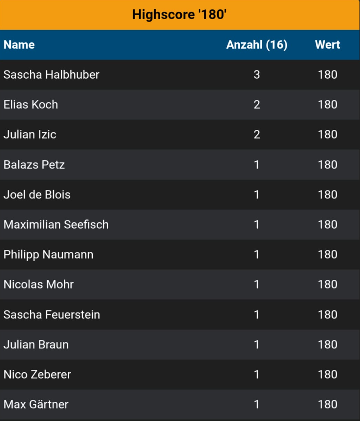 So wurde der Turniersieger, Claus Dieter Siegel, nicht nur mit Standing Ovations beglückwünscht. Er bekam sogar ein Ständchen alias The Power Phil Taylor. Knapp geschlagen von seinem Teamkameraden wurde Luca Segieth 2. Sieger.